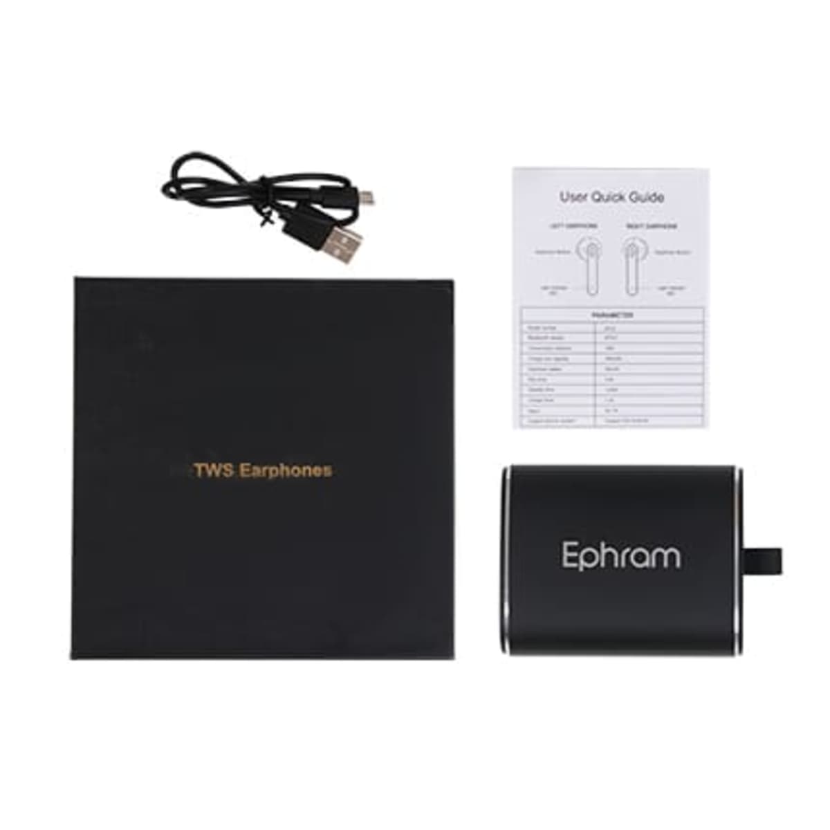 This True Wireless Earbuds comes with reliable, fast and convenient pairing to the devices with premium quality audio. The ultra lightweight, sweat proof design of the earbuds ensure an excellent, comfortable fit while the on-bud controller helps with track selection, volume control and answering calls, the earbuds have a built-in microphone which allows the user to take phone calls while using them. By using this item, you can release your hands when running, driving, walking or working. They are supplied with a Micro-B USB cable and an instruction leaflet. Simply recharge the TWS earphones by placing them back into their charging case.
