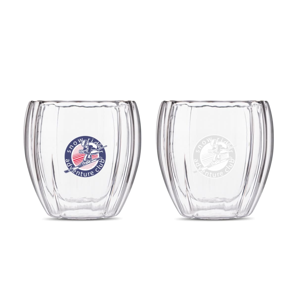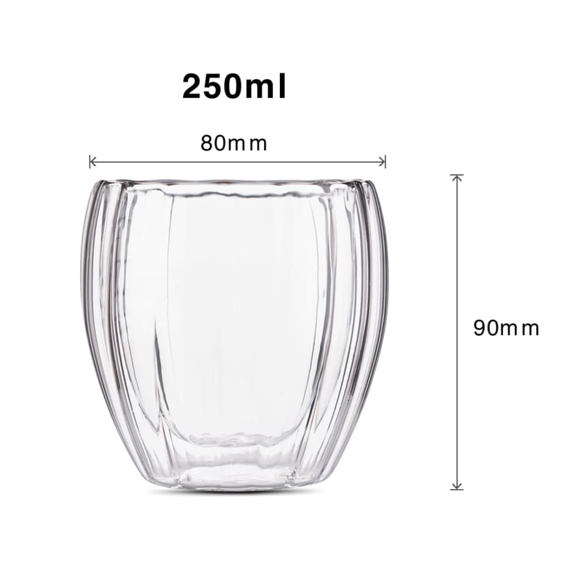 Get your branding seen with our new Spiral Double Wall Glass! Crafted from borosilicate glass. With a capacity of 250ml. The distinctive spiral shape not only stands out but also enhances the drinking experience. The double-wall design keeps your drinks at the perfect temperature, reducing heat or cold transfer by over 30°C. With engraving or high fire decal print to highlight your branding. Suitable for use as coffee, tea or beer and other beverages. Perfect as a gift for cafes, bars, hotels or home use.