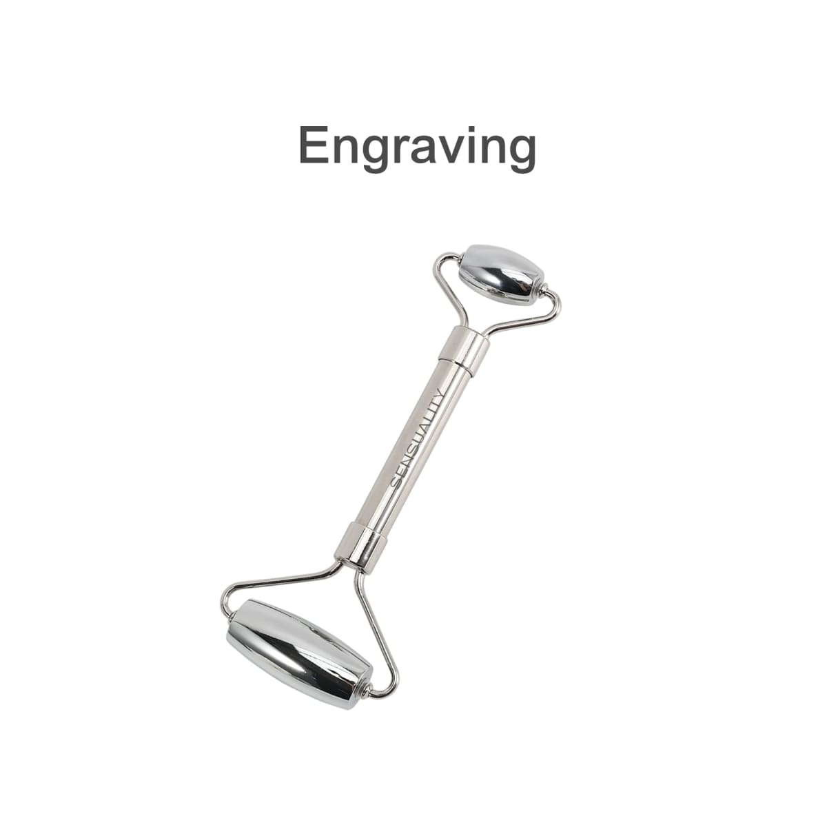 Discover the ultimate skincare upgrade with our Stainless Steel Facial Roller! Expertly crafted from zinc alloy and stainless steel, this dual-ended tool provides a refreshing coolness for your daily routine. The larger roller covers broad areas like cheeks and forehead, while the smaller one precisely contours around eyes and nose. Add custom engraving for a personal touch. Your perfect companion for at-home pampering and self-care sessions!