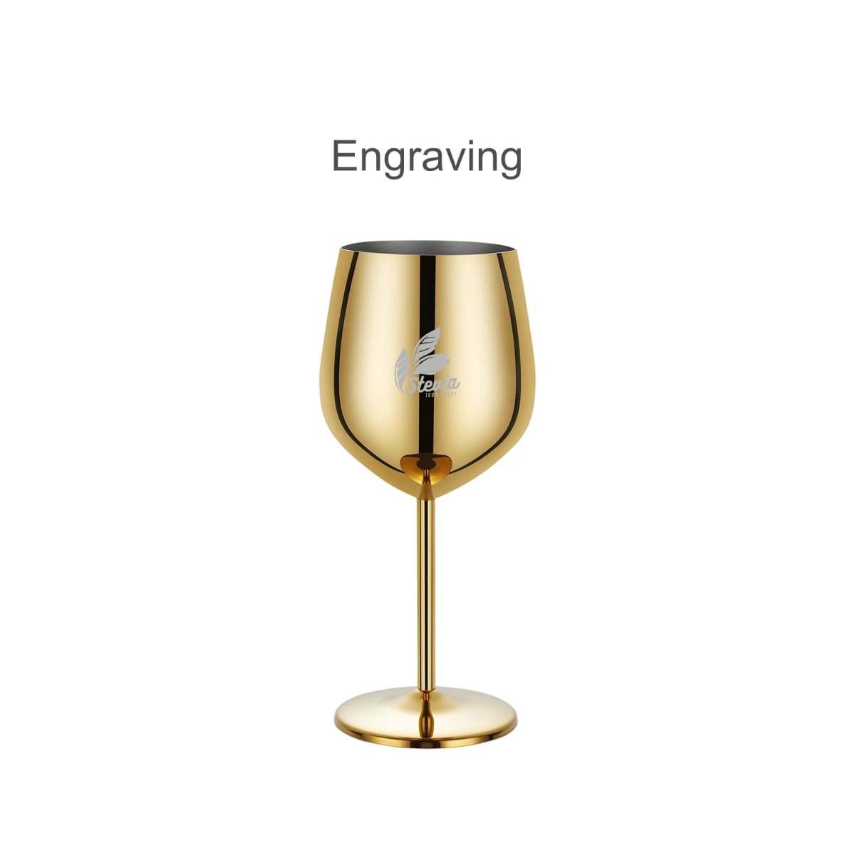 Create your own unique Stainless Steel Wine Goblet! Our newly launched stainless steel stemware is made from quality 304 stainless steel material, offering rust resistance, durability, scratch resistance, and drop-proof performance. While ensuring exceptional quality, this Stainless Steel Wine Goblet also boasts an elegant appearance. With engraving technology to highlight your design, with a capacity of 500ml. Available in three colours, silver, rose gold, and gold. It can be used as a wine glass, cocktail glass, champagne flute, or multi-functional beverage stemware, making it suitable for various indoor and outdoor occasions such as parties, camping, and travel.