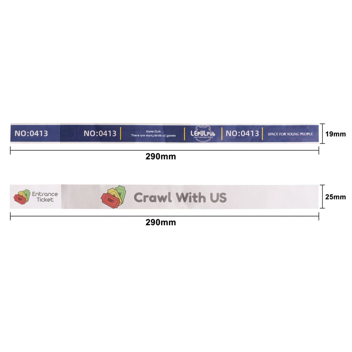 Our new tabbed Tyvek wristband is a single-use wristband that can be customised in full colour. Made of a tough and durable synthetic material, which provides a water-resistant seal. Complete with a removable, which can be used as a ticket, in a variety of scenarios. Complete with digital print to highlight your design. These wristbands are often used at festivals, sporting events, or other large events where there is a need to identify people.