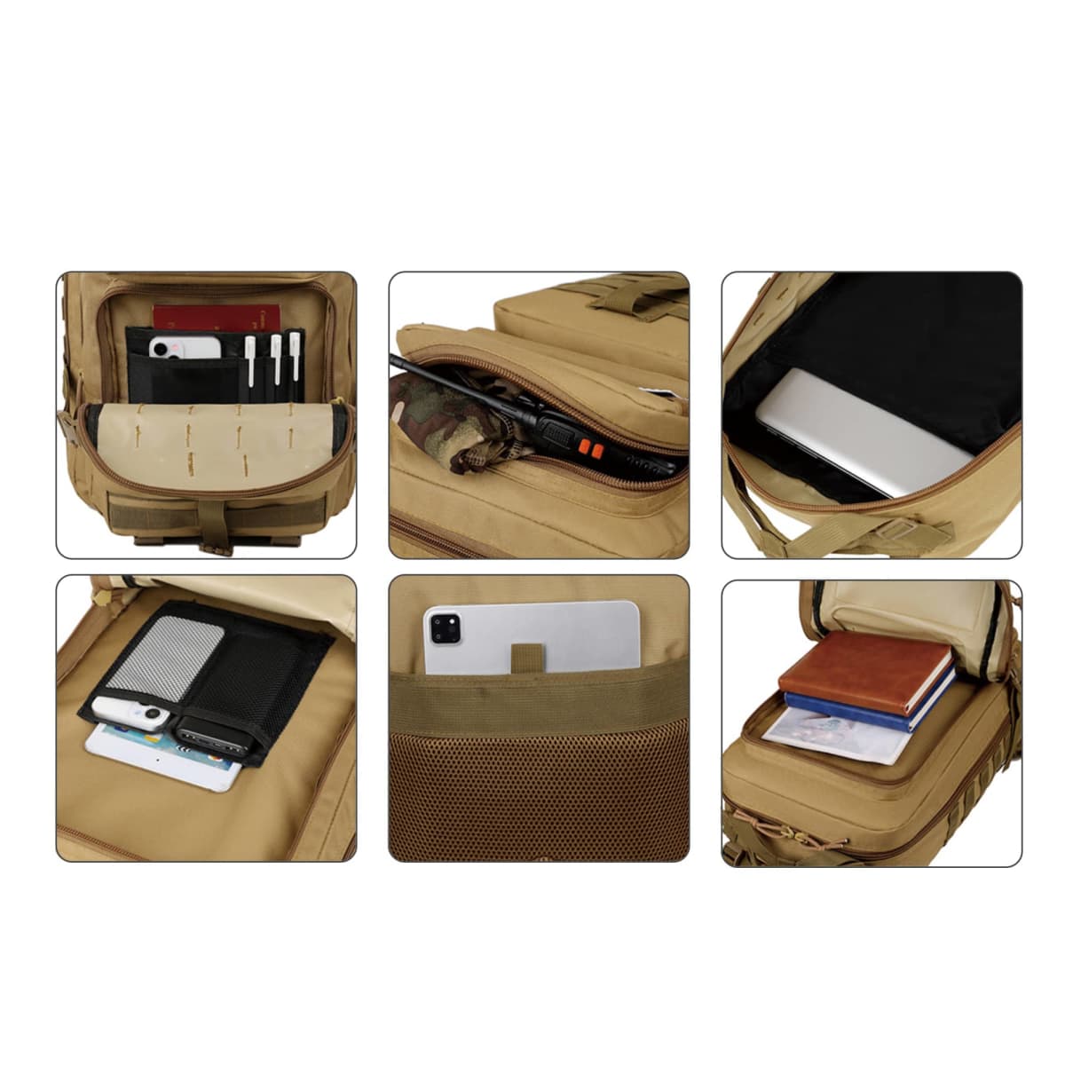 This Tactical Backpack is the perfect travel companion, which allows your climbing carabiners to be clipped on the front or side, featuring 2 front zipper pockets and a back pocket for essentials and a main pocket. Our quality backpack is made of Oxford material, that is durable. With PVC patch to showcase your design, you can choose from 3 colours.