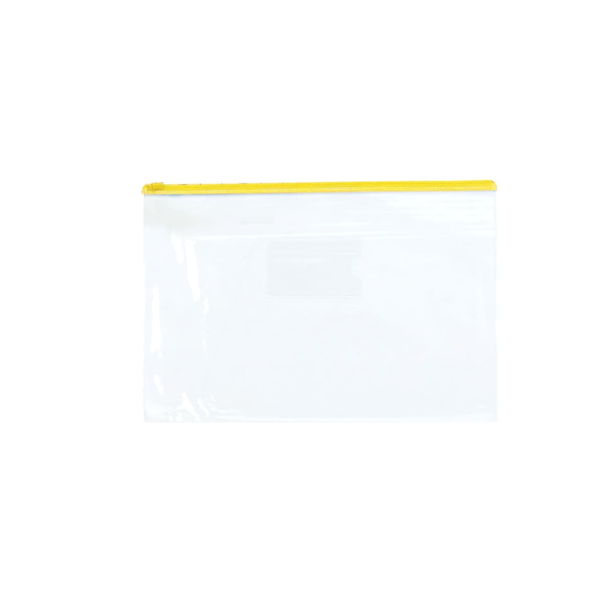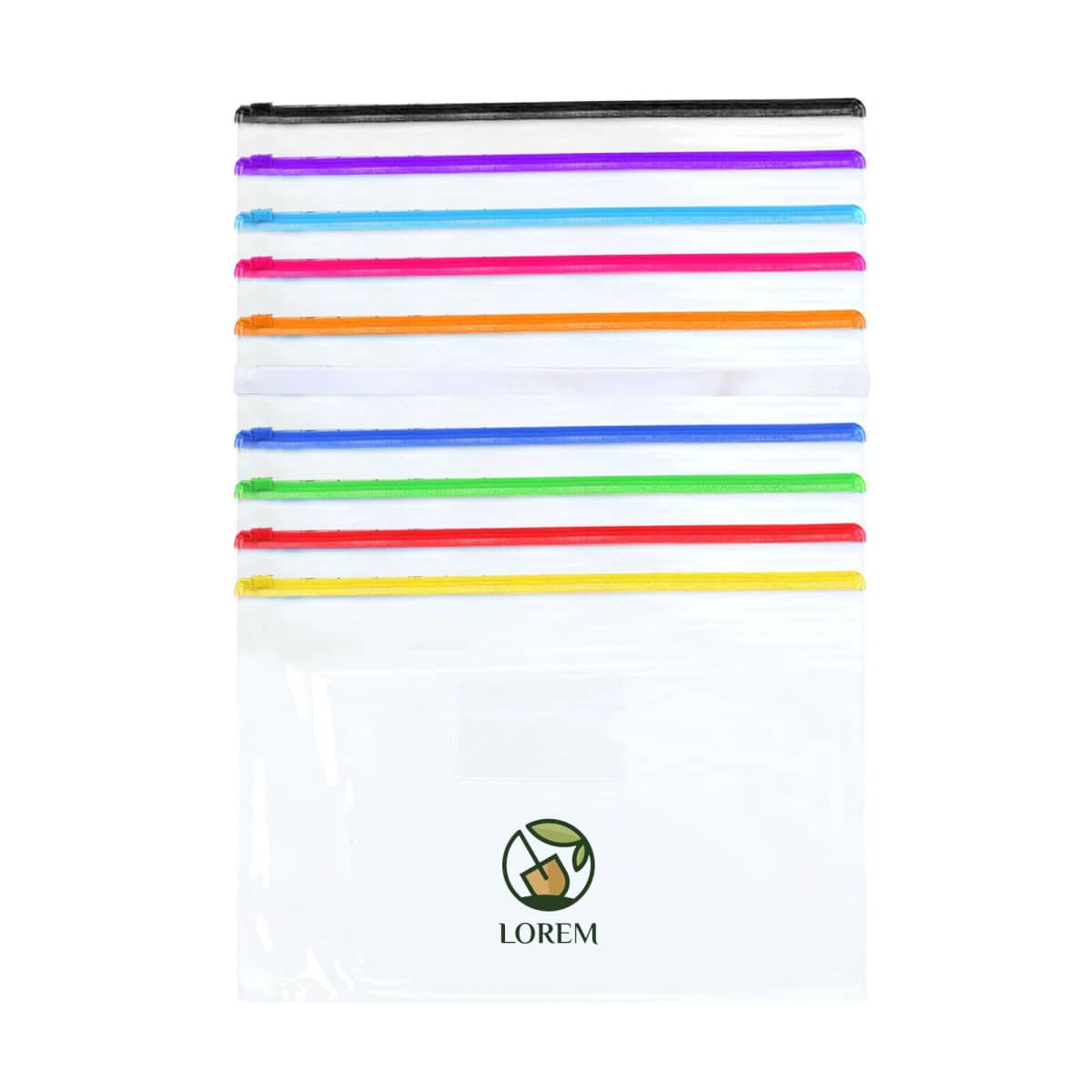 Our Transparent A4 file bag is designed to keep your documents clean and fresh with the A4 File Bag! This item made from high quality primary PVC particle, non-toxic and super transparent. Sealed with poly zip, water resistant, durable and lightweight. Keep your documents safe and sound for long term use. With screen print to highlight your logo. Poly zip colours available include: White, Yellow, Green, Blue, Red, perfect fit A4 sheets. They can be used for file storage in schools, college, offices, etc. and can also be used to store your personal belongings. A transparent surface allows you to find the files or items you want to find more quickly.