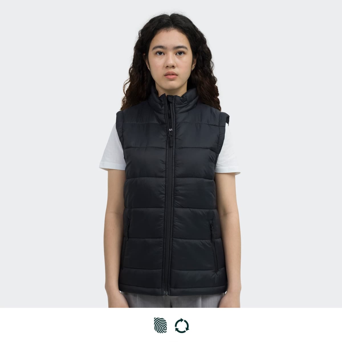 * Midweight women's puffer vest with 100% nylon outer shell and lining