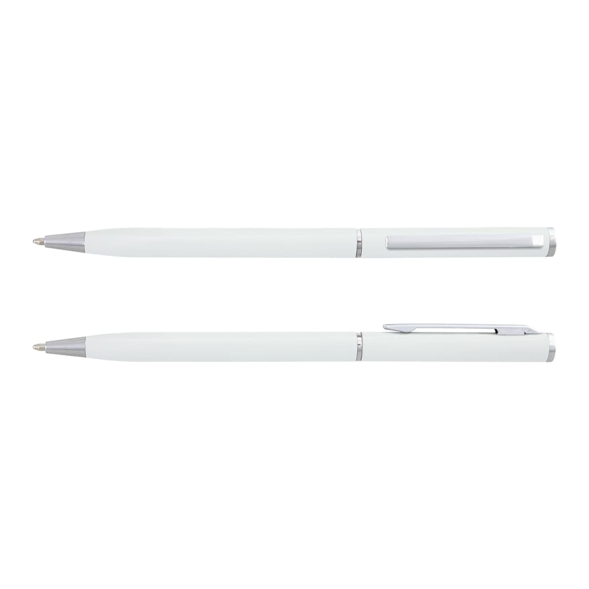 * Twist-action aluminium ballpoint pen with a narrow, elegant silhouette