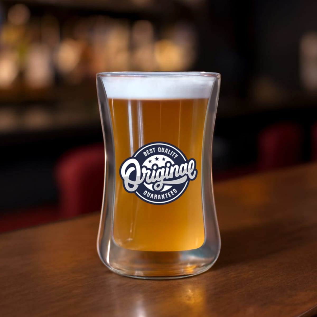 Get your branding seen with our new Waistline Double Wall Glass! Crafted from borosilicate glass. With a capacity of 250ml. The double-wall design keeps your drinks at the perfect temperature, reducing heat or cold transfer by over 30°C. With engraving or high fire decal print to highlight your branding. Suitable for use as coffee, tea or beer and other beverages. Perfect as a gift for cafes, bars, hotels or home use.