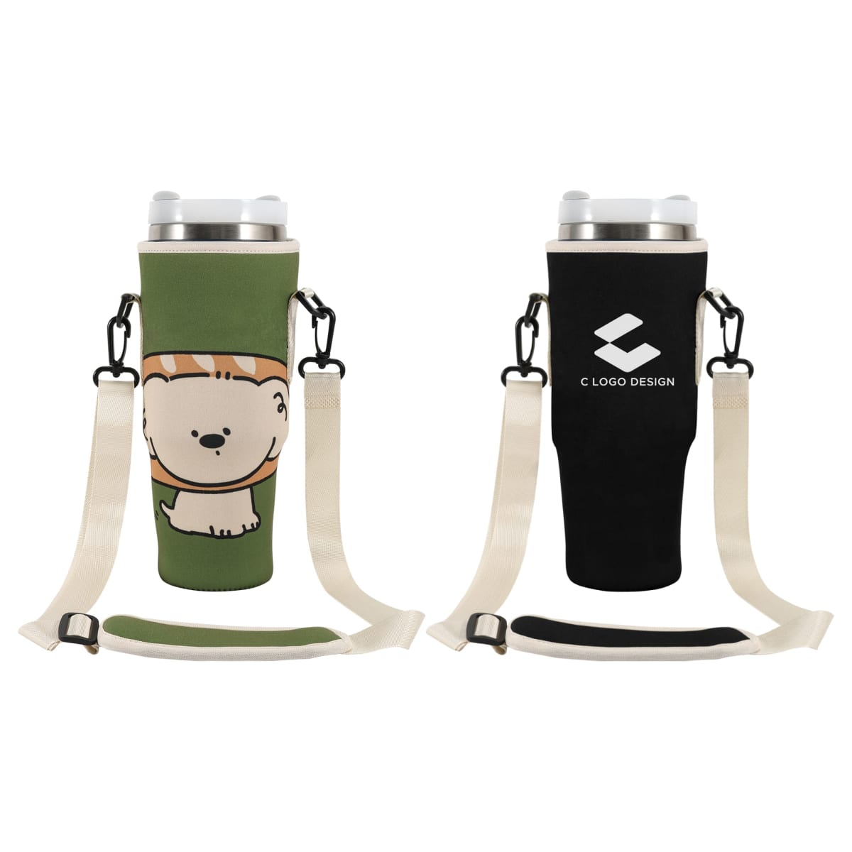 Enhance your branding with our Water Bottle Carrier Bag for Stanley Cup, crafted from durable and soft elastic neoprene. With Screen Print or Sublimation to showcase your logo and branding message. Comes with an adjustable and removable padded shoulder strap, which is suitable for all body types. You can carry it as a crossbody bag, waist bag or across your chest as a sling bag by adjusting the length. The versatile Bottle Carrier Bag for Stanley Cup is perfect for walking, camping, hiking, commuting or even if you're at the beach, gym or sporting events.