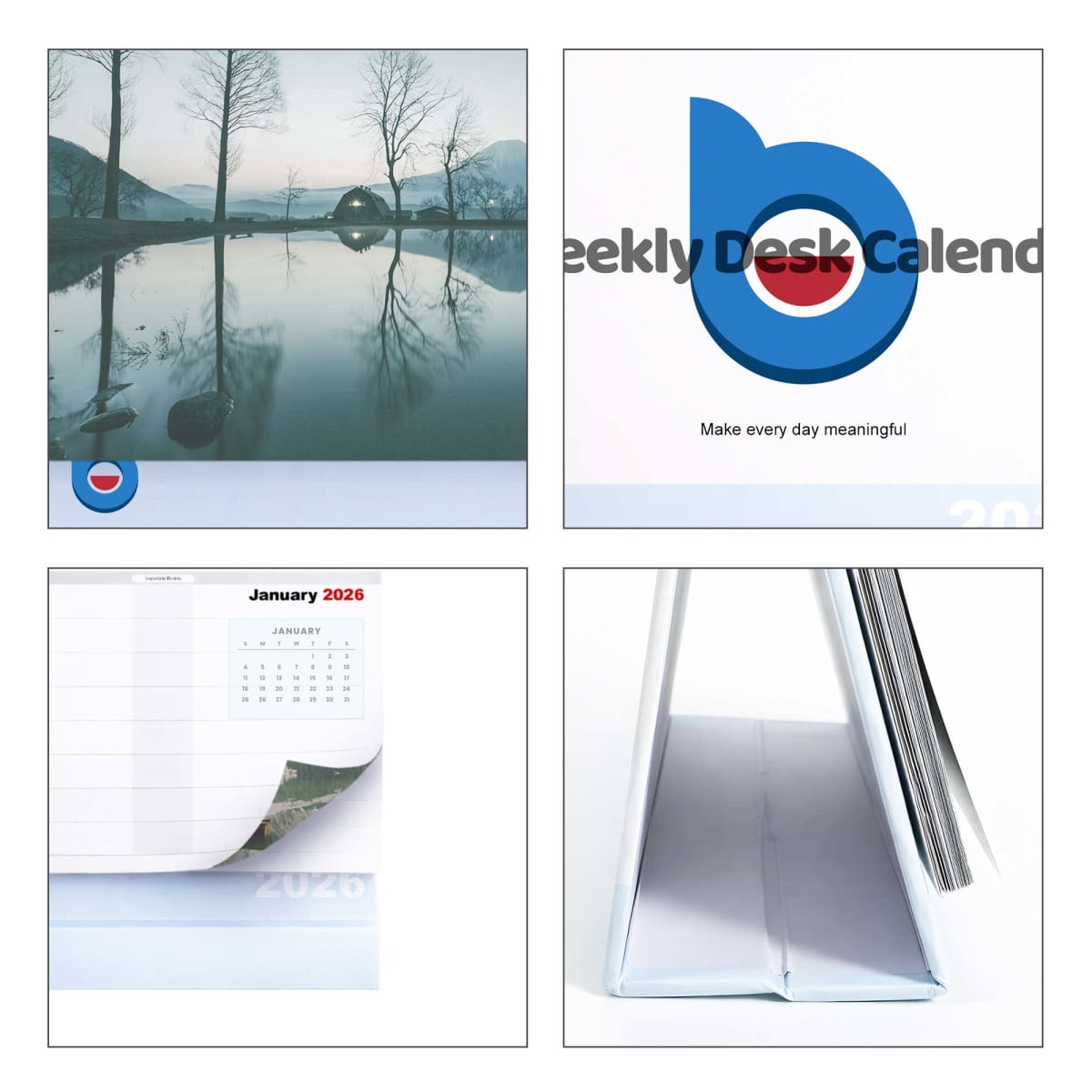 Meet your new desk organizer - the Weekly Desk Calendar! Crafted with 160gsm offset paper that writes smoothly, sturdy 250gsm cardboard covers, and reliable metal coil binding. Its stable design stands firmly on any desk for week-at-a-glance planning. Perfect for jotting down weekly tasks, goals, and reminders. Fully customise with CMYK printing to design your own style. Your ideal planning partner for offices, home desks, and creative workstations!