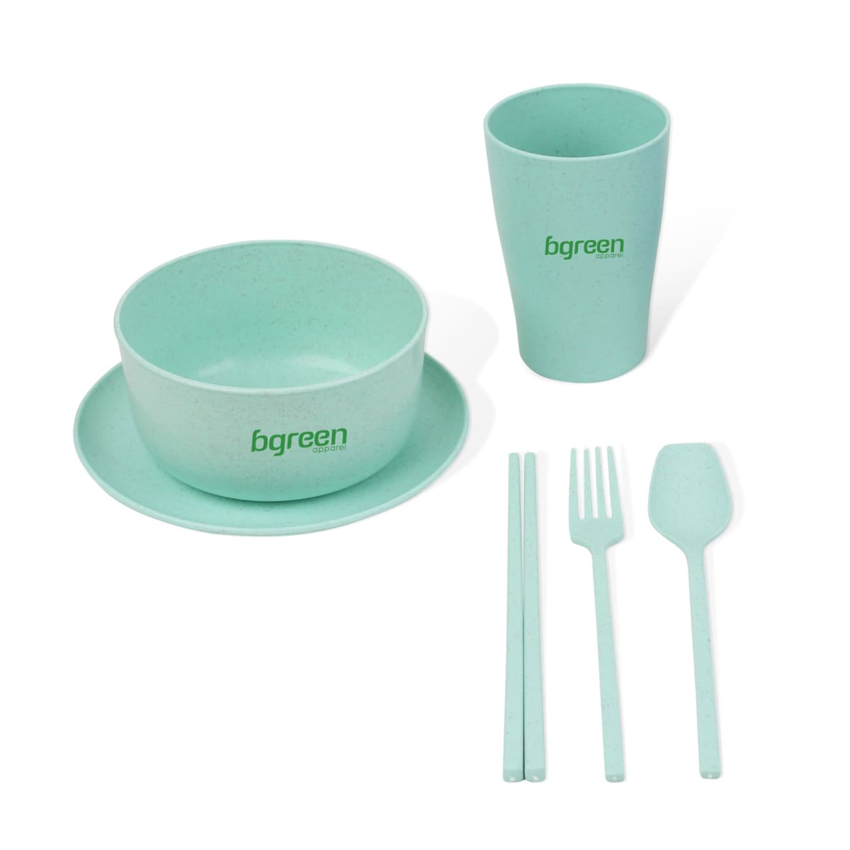 Create your own unique branded tableware with our new Wheat Straw Tableware Set! Made from eco-friendly wheat straw material. Set includes cup, bowl, plate, fork, spoon and chopsticks. With screen print on cup, bowl, plate and box to highlight your design. Available in four colour options. Microwave and dishwasher friedndly. The perfect eco-friendly promotion gift for schools, companies or everyday use.