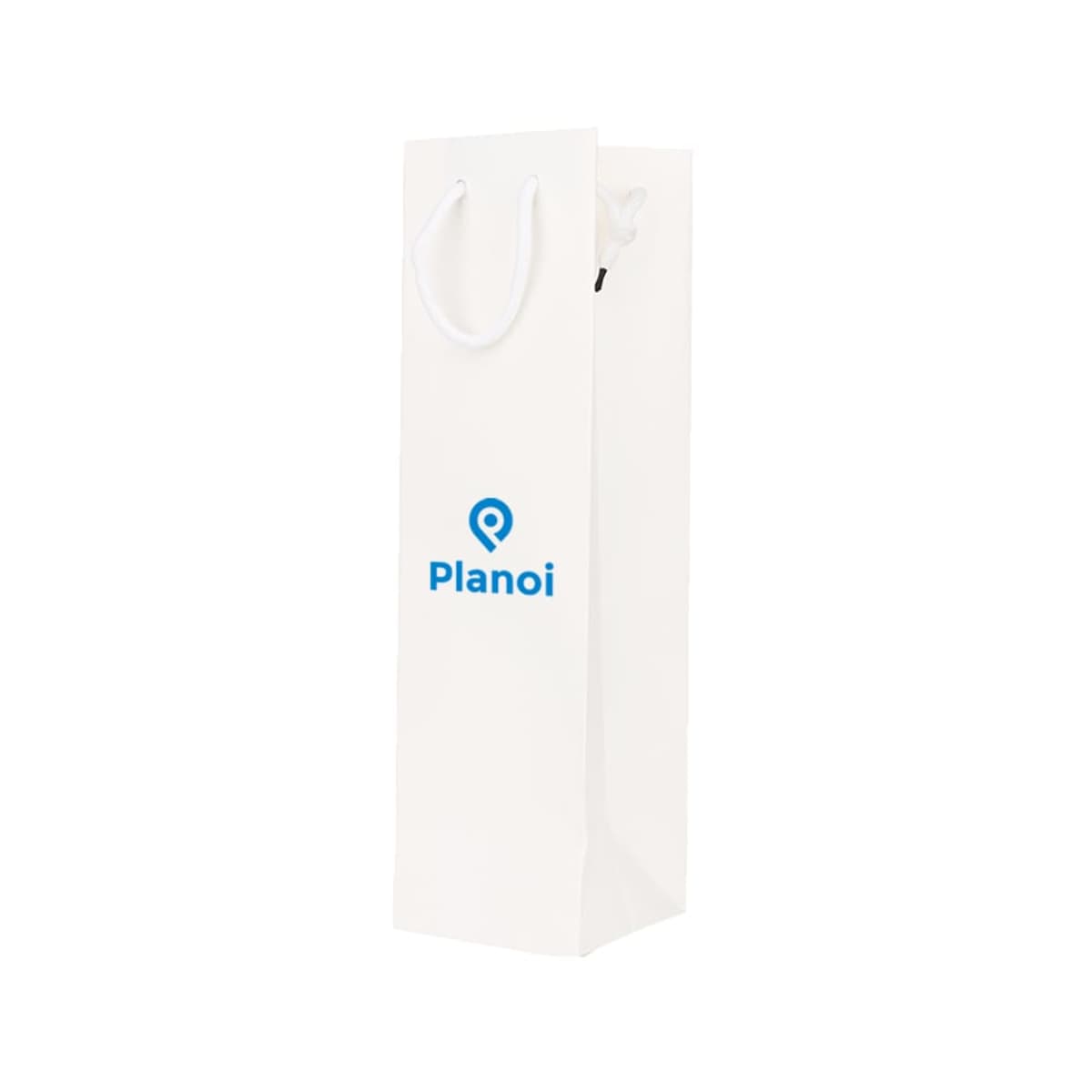 These stylish wine paper bags feature a rope handle, and are perfect as conference or shopper promotional give away bags. Can be ordered unprinted or custom printed, with screen print and full colour print options available. Add on stickers are also available in different shapes. Wine bags available in two different sizes, the smaller size can hold at least one bottle of wine, and the larger size can hold up to 2 bottle of wine. FSC certified material, ensuring your paper source supports sustainable forest practices.